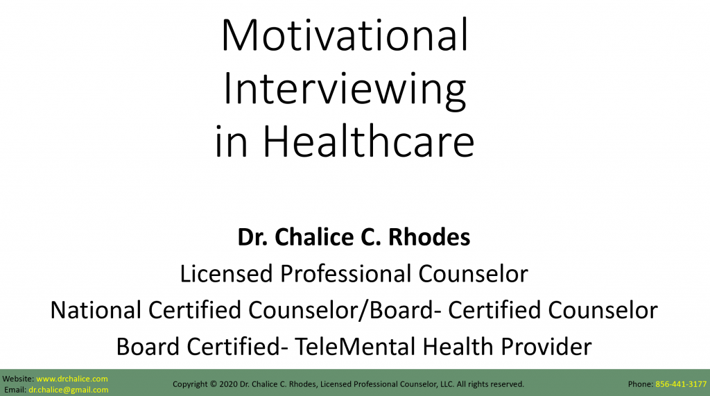 If your organization is in need of Motivational Interviewing training, contact Dr. Chalice today to reserve a time!